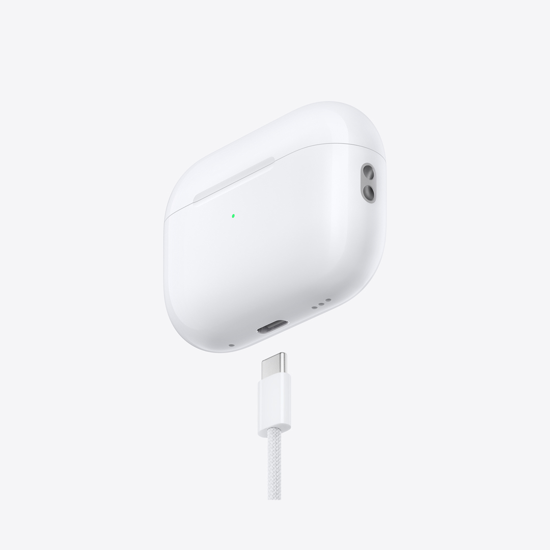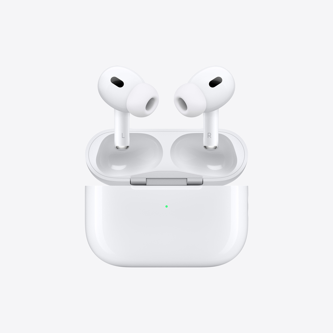Experience unprecedented sound with pro-level Active Noise Cancellation, Footnote Adaptive Audio for the right mix of noise control in any environment, Transparency mode to hear the world around you, Footnote and Conversation Awareness to seamlessly lower your media volume when you speak to someone nearby. Footnote Both AirPods Pro 2 and the wireless MagSafe Charging Case (USB-C) are IP54 dust, sweat, and water resistant, Footnote and you can use the Find My app to keep track of them.